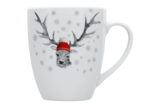 Ozdobte svoj vianočný stôl týmto skvelým hrnčekom, ktorý je vyrobený z bieleho porcelánu a zaujme motívom zimného jeleňa. Ideálne pre Vaše obľúbené horúce nápoje alebo aj ako dekoratívny prvok na vianočnom stole.