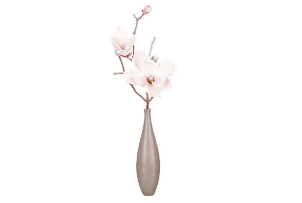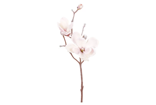 Pôsobivý umelý kvet magnólie v ružovej farbe so zasneženým efektom je skvelým dekoratívnym doplnkom vianočnej výzdoby. Kvetinová dekorácia obohatí Váš sviatočný interiér, nikdy neuvädne a dodá domovu nádych elegancie, pokoja a romantiky. Jej krása vynikne vo váze na sviatočne prestretom stole či inom viditeľnom mieste. Výška 50 cm.