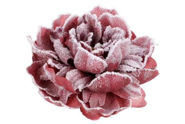 Vianočné dekorácie Zasnežená pivonka na klipe 14 cm, hnedá