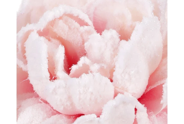 Pôsobivá vianočná dekorácia pivonka v ružovej farbe vnesie do interiéru zimnú náladu. Umelý kvet je vybavený klipom, ktorý umožňuje ľahké pripevnenie na vianočný stromček, vetvu, veniec alebo inú vianočnú dekoráciu. Efekt zasneženia pridáva kvetine jedinečný a rozprávkový vzhľad. Ozdobu môžete použiť samostatne alebo ju kombinovať s ďalšími vianočnými dekoráciami. Veľkosť 14 cm.