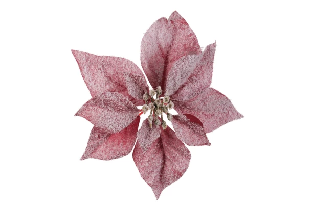 Vianočná hviezda (poinsécia) je neodmysliteľne spojená s najkrajšími sviatkami v roku. Tento umelý kvet o veľkosti 22 cm je vybavený klipom, ktorý umožňuje ľahké pripevnenie na vianočný stromček, vetvu, adventný veniec alebo inú vianočnú dekoráciu. Červená farba so zasneženým efektom dodáva kvetine elegantný a tradičný vzhľad.
