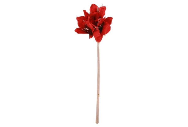 Pôsobivý umelý kvet amarylis (hvezdník) v červenej farbe je skvelým dekoratívnym doplnkom vianočnej výzdoby. Kvetinová dekorácia obohatí Váš sviatočný interiér, nikdy neuvädne a dodá domovu nádych elegancie, pokoja a romantiky. Jej krása vynikne vo váze na sviatočne prestretom stole či inom viditeľnom mieste. Výška 44 cm.