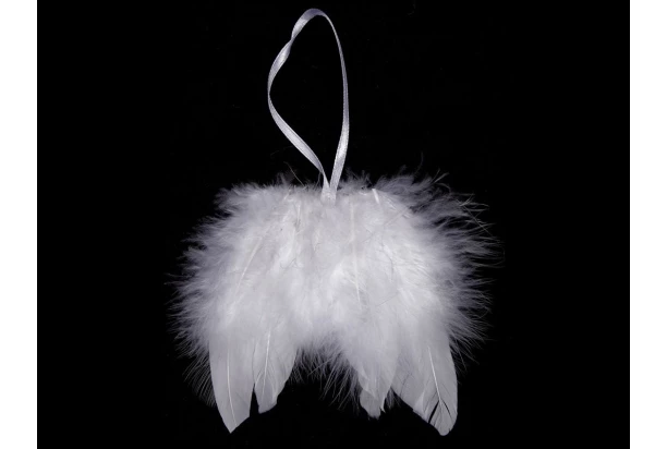 Vianočná dekorácia/ozdoba Anjelské krídla z peria 8 cm, biela