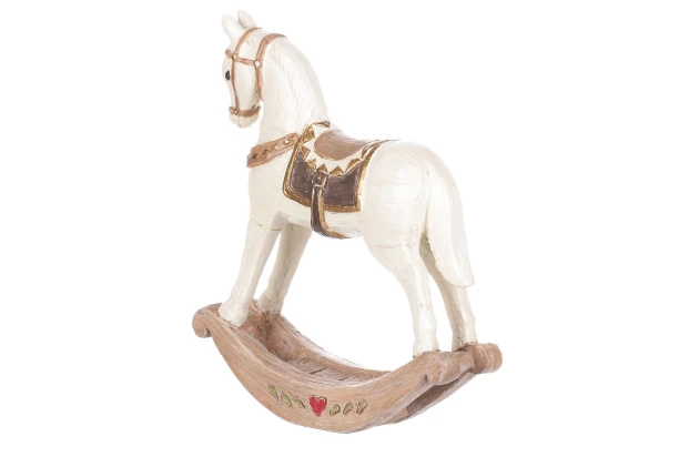 Vianočná dekoračná soška hojdací kôň v bielej farbe vytvorí sviatočnú atmosféru v každom interiéri. Či už ako dekorácia na stôl, na okenný parapet alebo ako doplnok k Vašej zbierke vianočných dekorácií, táto dekoratívna figúrka je skutočným pútačom pre oči. Vianočná dekorácia pridá do Vášho domova nádych tradičného kúzla a radosti. Výška 12 cm.