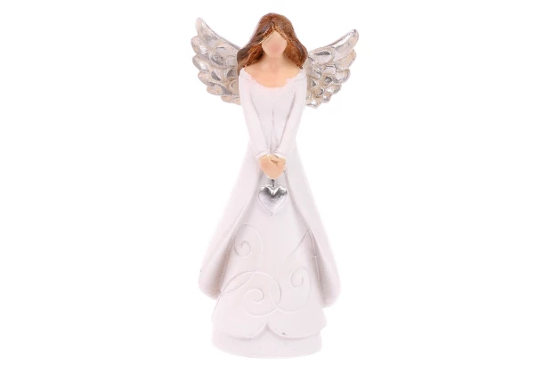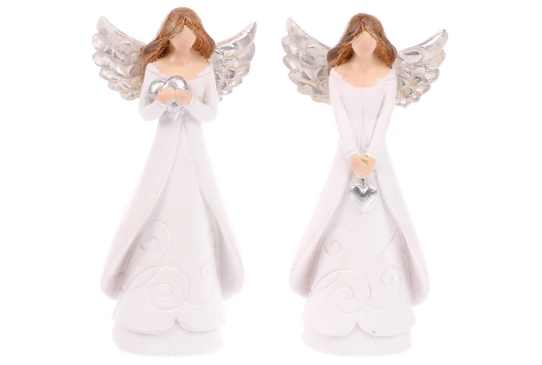Dekoračná soška predstavuje anjela so srdiečkom v bielych zdobených šatách. Romantická figúrka s výškou 10 cm sa stane milou dekoráciou, ktorá poteší Vás aj Vašich blízkych nielen na Vianoce. Dodávané v 2 rôznych variantoch.