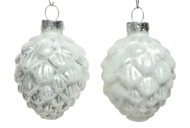 Sada obsahuje 6 ks sklenených vianočných ozdôb v tvare bielych šišiek, ktoré sa trblietajú a lesknú a vyzerajú ako by boli pokryté snehom. Tieto ozdoby pristanú každému vianočnému stromčeku a perfektne doladia sviatočnú atmosféru.
