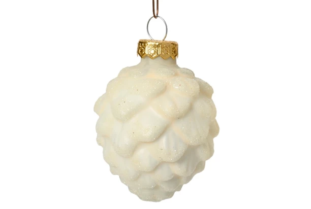 Vianočné ozdoby (6 ks) Šišky, krémové trblietavé, sklo