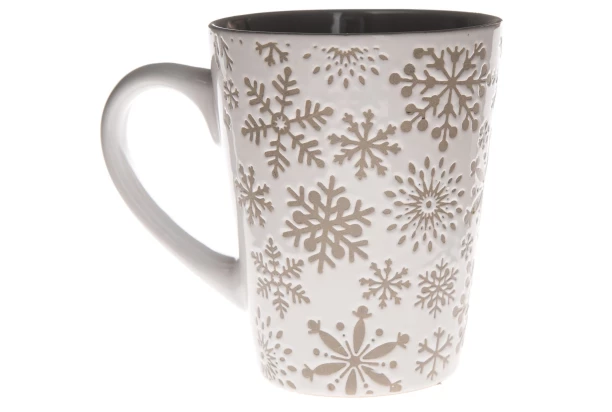 Hrnček s objemom 320 ml je ozdobený snehovými vločkami, a preto je ideálnym doplnkom pre Váš vianočný stôl. Hrnček je biely, ale motív a vnútro je hnedý, čo dodáva kontrast a zaujímavý dizajnový prvok. Vychutnajte si svoju obľúbenú kávu, čaj alebo napríklad horúce kakao a nalaďte sa na Vianoce.