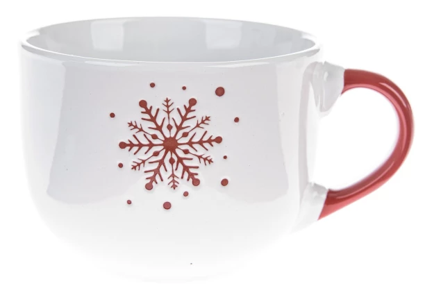 Hrnček s objemom 500 ml so zimným motívom snehovej vločky je ideálny na pitie kávy, čaju alebo napríklad horúcej čokolády. Červeno-biele prevedenie dodáva tomuto hrnčeku elegantný a tradičný vzhľad, ktorý doladí vianočnú atmosféru.