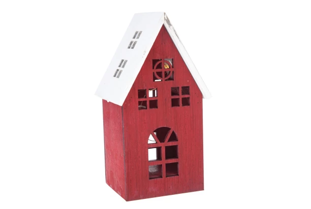 Červený domček s bielou strechou kombinuje eleganciu dreva s jemným a príjemným osvetlením. Práve jeho precízne detaily mu dodávajú zvláštne kúzlo. Stačí zapnúť LED svetlo a sledovať, ako sa domček žiarivo rozžiari, vytvárajúci magickú atmosféru predovšetkým v tlmenom osvetlení. Tento domček je ideálny ako vianočná dekorácia, ktorá dotvorí útulné prostredie počas sviatkov.