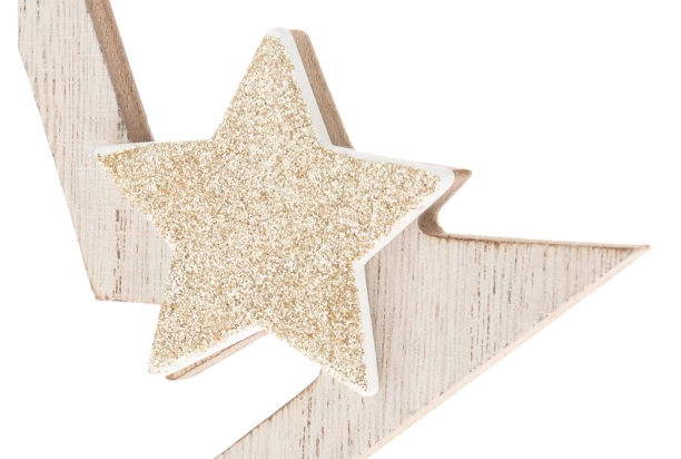 Drevená hviezda s malou hviezdou na stojane v prírodnom prevedení prinesie do Vášho interiéru jednoduchý a rustikálny vianočný šarm. Či už dekoráciu umiestnite na policu, parapet, komodu alebo stôl, soška dotvorí jedinečné kúzlo Vianoc.