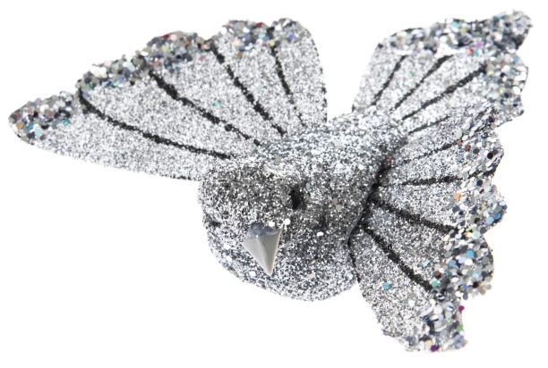 | Názov | Vtáčik s klipom, strieborný trblietavý |