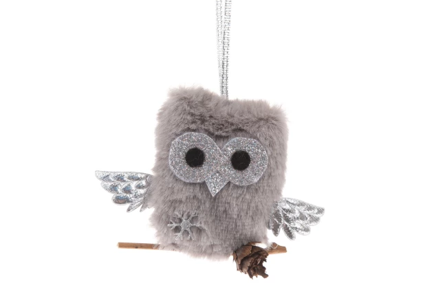 Vianočná dekorácia/ozdoba Závesná plyšová sova, šedá