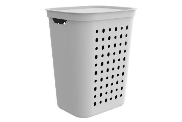 Kôš na bielizeň s objemom 55 litrov s odnímateľným vekom je vyrobený z recyklovaného bieleho plastu a harmonicky zapadne do prirodzeného prostredia bývania v štýle vidieckeho domu aj do moderného interiéru. Bielizňový kôš je dokonalý pomocník v každej domácnosti pri každodennom praní. Dve pohodlné a ergonomické rukoväte zaisťujú ľahké prenášanie.
