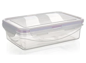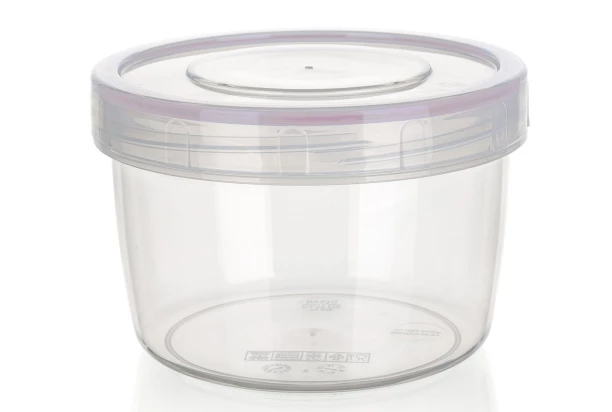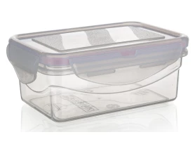 Hermetická plastová okrúhla dóza s objemom 0,5 l s ružovým silikónovým tesnením. Potraviny zostávajú dlho čerstvé a bez zápachu.