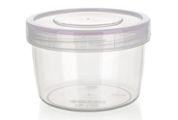 Hermetická plastová okrúhla dóza s objemom 0,25 l s ružovým silikónovým tesnením. Potraviny zostávajú dlho čerstvé a bez zápachu.