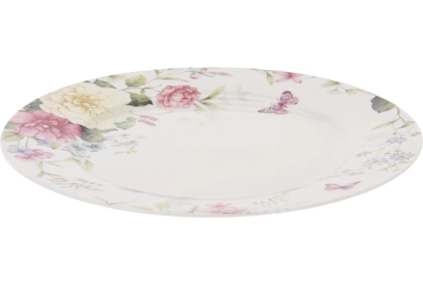 Plytký tanier s priemerom 27 cm je vyrobený z porcelánu New Bone China v krémovom prevedení a je zdobený jemným kvetinovým vzorom. Jedálenský tanier je ideálny na servírovanie hlavných chodov.