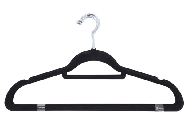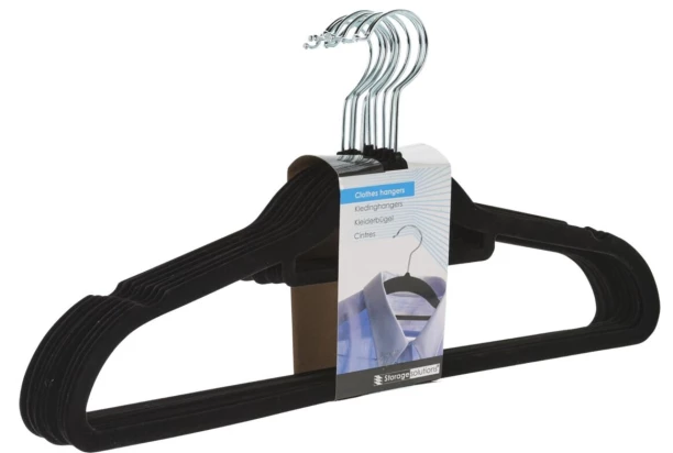 Štýlové a elegantne vyzerajúce ramienka (10 ks) sú potiahnuté mäkkým a na dotyk príjemným čiernym zamatom. S dĺžkou 45 cm sú ideálne na uloženie rôznych druhov oblečenia. Vďaka plstenému povrchu odevy neskĺznu a špeciálne držiaky na kravaty, opasky a šatky zaistia, že všetky vaše doplnky budú vždy po ruke. Ramienka sú navyše vybavené otočnými háčikmi, čo z nich robí ešte praktickejšími pomocníkmi pri organizácii vašej šatníkovej skrine. Nechajte svoje obľúbené kúsky visieť s eleganciou a využite každý centimeter priestoru.