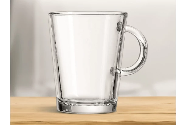 Tento elegantný hrnček z číreho skla je ideálny na každodenné použitie. Vďaka svojmu jednoduchému a praktickému designu sa hodí do každej domácnosti či kancelárie. Sklenený materiál umožňuje sledovať obsah hrnčeka a jeho priehľadnosť dodáva nápojom estetický vzhľad. Objem 290 ml.