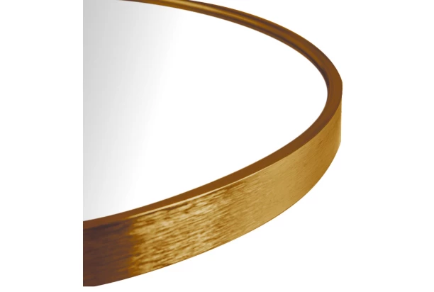 Nástenné zrkadlo s priemerom 60 cm je zasadené do hliníkového rámu s matne zlatým povrchom. Jeho okrúhly tvar prináša do priestoru jemnú estetiku, ktorá sa ľahko zladí s rôznymi štýlmi interiérov, a zrkadlu dodáva šmrncovný moderný vzhľad. Toto zrkadlo spája eleganciu s praktickosťou a vďaka svojim rozmerom poskytuje dostatočnú veľkosť na každodenné použitie.