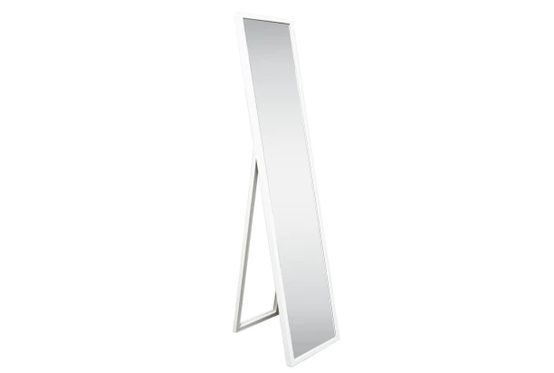 Samostatne stojace zrkadlo je osadené do bieleho plastového rámu. Hodí sa do každého interiéru a môže plniť ako praktickú, tak estetickú funkciu v priestore obývačky, spálne, kúpeľne alebo napríklad šatne.