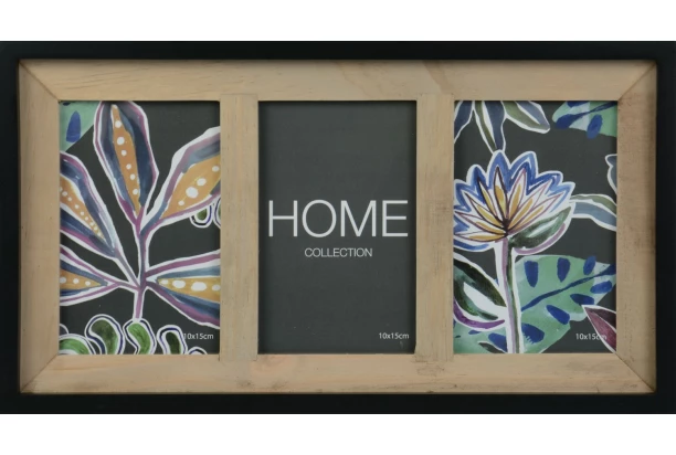 Fotorámik na 3 fotografie vo formáte 10×15 cm kombinuje drevo a číre sklo. Fotorám je určený na zavesenie na stenu a predstavuje praktickú aj štýlovú dekoráciu pre interiér. Farba prírodná svetlo hnedá a čierna.
