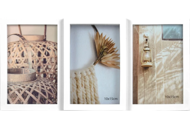 Rámček na 3 fotografie, vyrobený z bieleho plastu, predstavuje elegantné spojenie praktickosti a štýlu. Jeho dizajn umožňuje usporiadať fotografie vo formátoch 10×15 cm, čo z neho robí skvelý doplnok pre váš interiér. S možnosťou jednoduchého zavesenia na stenu či postavenia na stôl sa stáva výraznou dekoráciou pre každý priestor. Celkové rozmery rámu sú 34×16,5×2 cm, čo poskytuje dostatok priestoru pre vaše obľúbené snímky.