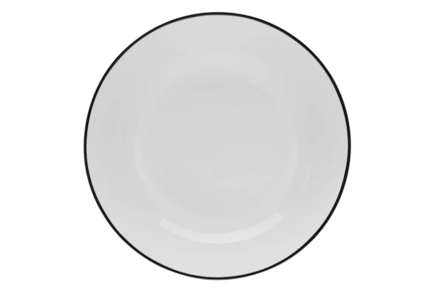 Hlboký tanier s priemerom 20 cm je vyrobený z kvalitného porcelánu v bielej farbe, ktorá prináša do vašej jedálne čistotu a sviežosť. Na vonkajšom okraji je jemne spracovaná, ručne maľovaná čierna linka, ktorá dodáva tanieru nadčasovú eleganciu. Vhodné na servírovanie polievok, šalátov, cestovín a ďalších pokrmov.