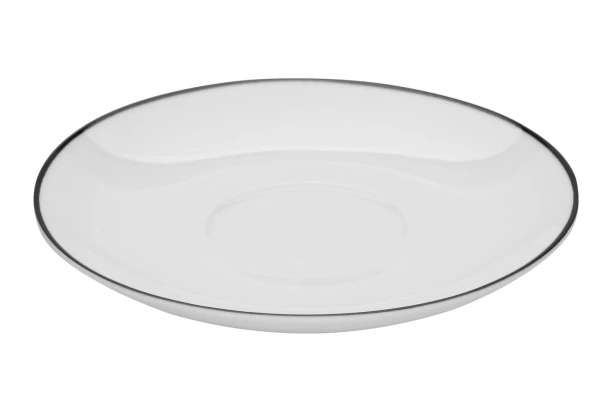 Podšálka s priemerom 14 cm je vyrobená z kvalitného porcelánu v bielej farbe, ktorá prináša do vašej jedálne čistotu a sviežosť. Na vonkajšom okraji je jemne spracovaná, ručne maľovaná čierna linka, ktorá dodáva hrnčeku nadčasovú eleganciu. Vhodná k šálke na kávu.