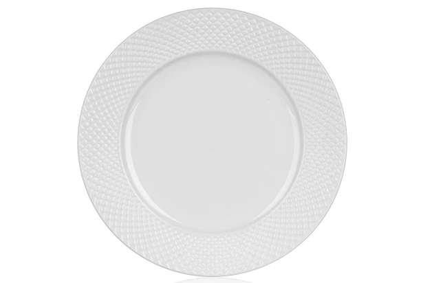 Elegantný plytký tanier z kolekcie Diamond Line je vyrobený z bieleho porcelánu s ozdobným reliéfom. Ideálne na servírovanie hlavných jedál.