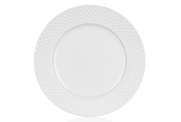 Elegantný dezertný tanier z kolekcie Diamond Line je vyrobený z bieleho porcelánu s ozdobným reliéfom. Ideálne na servírovanie predjedál a dezertov.
