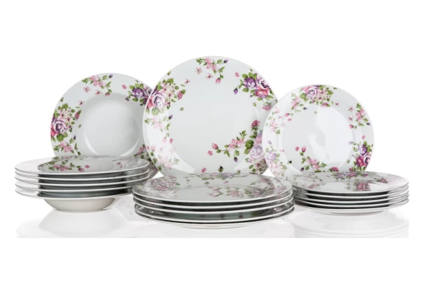 18-dielna sada tanierov sa hodí pre každé stolovanie. Elegantné porcelánové taniere s kvetinovým dekorom sú vhodné na akúkoľvek príležitosť, či už je to formálna večera alebo neformálne stretnutie s priateľmi a rodinou. S touto sadou tanierov vytvoríte krásne prestretý stôl pre Vašich hostí.