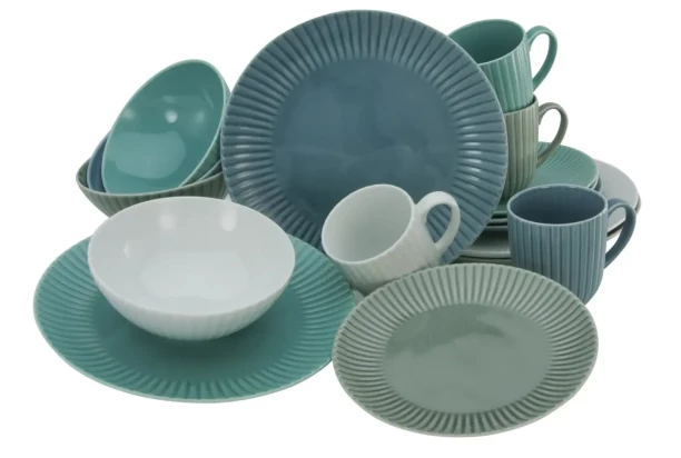 Elegantná porcelánová jedálenská súprava obsahuje celkom šestnásť kusov riadu, ktorý očarí svojim dizajnom s reliéfnou štruktúrou. Tento jedálenský servis je skutočným pútačom na každom jedálenskom stole, dodávajúc prirodzený šmrnc každej jedálni či kuchyni. Harmonické prírodné glazúry sú v rôznych farbách a dajú sa ľubovoľne kombinovať. Sada riadu sa skladá z jedálenských tanierov, dezertných tanierov, viacúčelových misiek a hrnčekov na kávu. Vhodné pre štvorčlennú domácnosť.