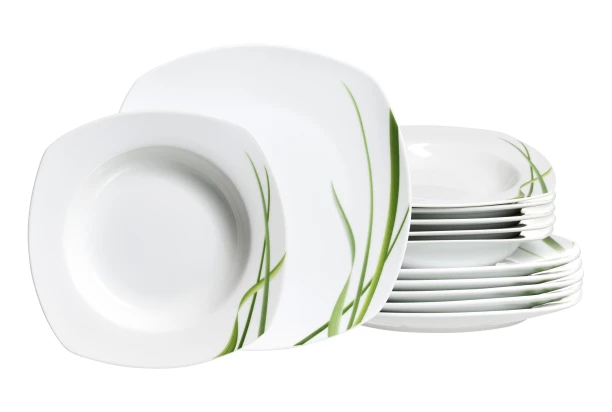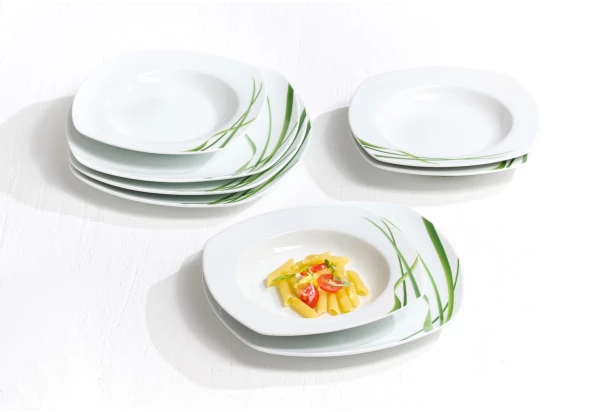 12-dielny jedálenský servis s jednouchým prírodným motívom je ideálny pre každodenné stolovanie aj špeciálne príležitosti. Riad je vyrobený z vysoko kvalitného porcelánu a dokonale zapadne do každej kuchyne. Prestrite stôl a servírujte až pre 6 osôb.