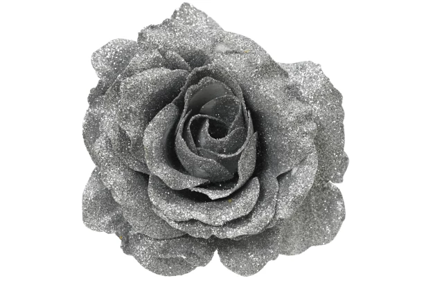 Vianočná ozdoba Ruža na klipe 12 cm, strieborná