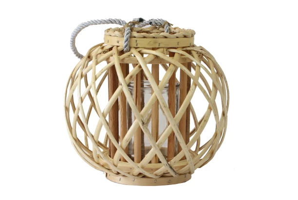 Tento lampáš zo svetlého dreva, starostlivo opletený prírodným prútím, prináša do interiéru nádych rustikálneho kúzla. Na vrchu lampáša sa nachádza lanový úchyt, ktorý uľahčuje jej prenášanie a dodáva mu originálny vzhľad. Vnútri lampáša je vyberateľné ochranné sklo na sviečku, ktoré zaisťuje bezpečnosť a pohodlie pri používaní. Rozmery lampáša sú 27×24×27 cm, čo ho robia ideálnou voľbou pre umiestnenie na stôl, komodu alebo do vonkajšieho priestoru. Táto lampáš vytvorí príjemnú atmosféru a prinesie útulné svetlo do každého kúta vášho domova.