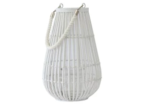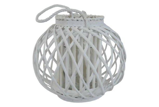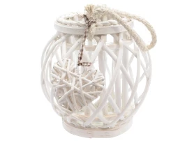 Tento biely lampáš z dreva, starostlivo opletený prírodným prútím, prináša do interiéru nádych rustikálneho kúzla. Na vrchu lampáša sa nachádza lanový úchyt, ktorý uľahčuje jeho prenášanie a dodáva mu originálny vzhľad. Vnútri lampáša je vyberateľné ochranné sklo na sviečku, ktoré zaisťuje bezpečnosť a pohodlie pri používaní. Rozmery lampáša sú 27×24×27 cm, čo ho robia ideálnou voľbou pre umiestnenie na stôl, komodu alebo do vonkajšieho priestoru. Tento lampáš vytvorí príjemnú atmosféru a prinesie útulné svetlo do každého kúta vášho domova.