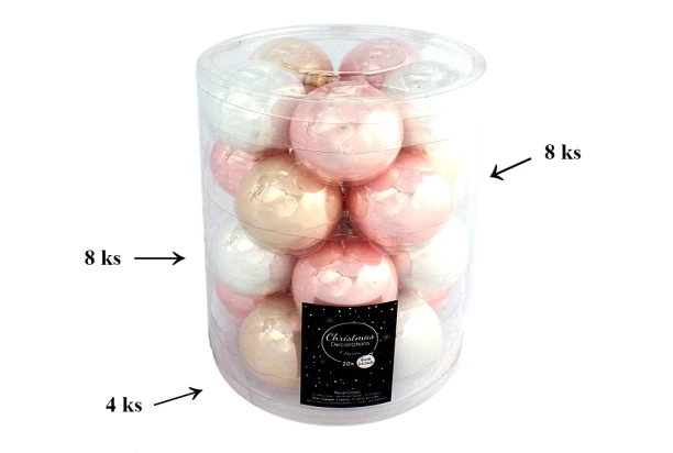 Vianočné ozdoby (20 ks) Sklenené gule, mix ružová/biela/šampaň