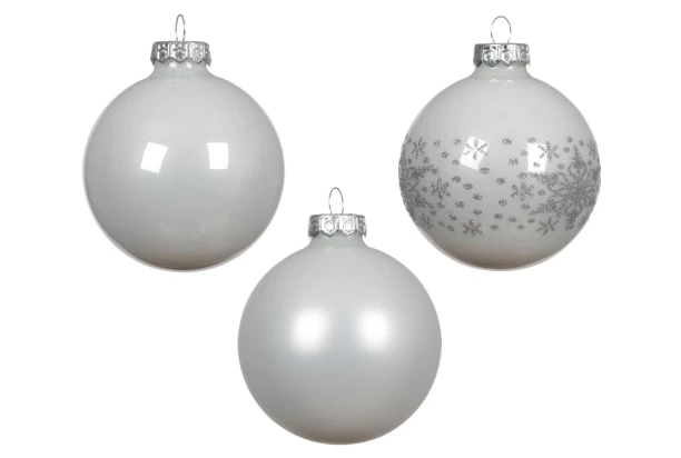 Elegantná sada 12 sklenených gulí v bielej farbe je perfektným doplnkom pre každú vianočnú výzdobu. Každá guľa je vyrobená z kvalitného skla a má priemer 7 cm. Vianočné gule sú ideálne na vianočný stromček, ale môžu tiež slúžiť ako ozdoba na vence, girlandy alebo do dekoratívnych mís.