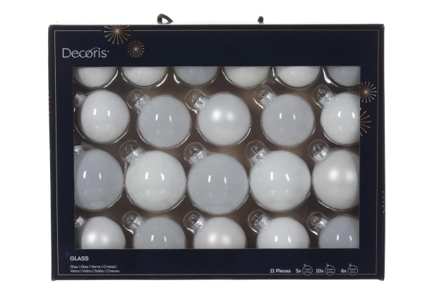 Vianočné ozdoby (21 ks) Sklenené gule, biele