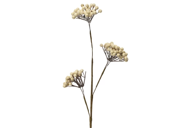 Táto umelá vetvička s výškou 50 cm zdobená krémovými bobuľami prinesie do Vášho domova kúsok prírody. Je ideálna na vytvorenie sviatočných dekorácií, kytíc alebo aranžmánov.
