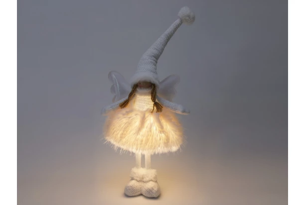 Táto roztomilá figúrka s LED diódami vytvorí v každej izbe kúzelnú atmosféru. Svetelný anjel je vyrobený z mäkkého a príjemného materiálu, ktorý pôsobí veľmi realisticky. Vďaka svojej výške 50 cm je výrazným doplnkom každej vianočnej výzdoby. Biely anjel je napájaný batériami, a preto ho môžete umiestniť kamkoľvek si prajete.