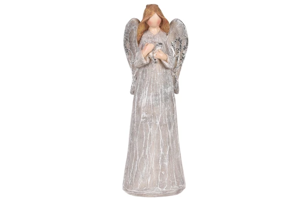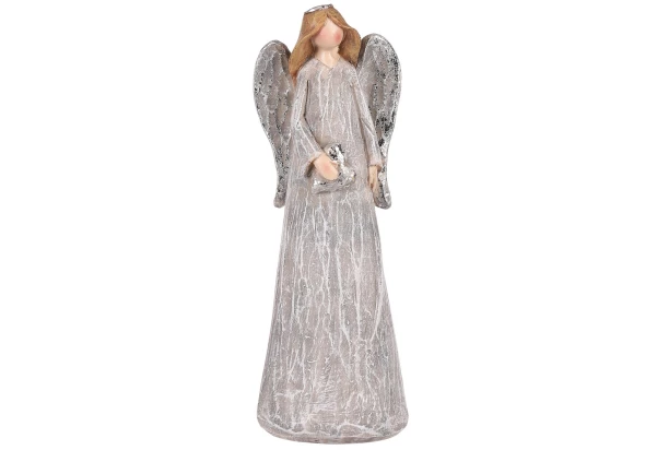 Polyresinová dekoratívna soška šedého anjela so srdcom a striebornými krídlami sa dodáva v 2 rôznych variantoch. Či už dekoráciu umiestnite na policu, parapet, komodu alebo stôl, bude vám pripomínať lásku a ochranu, ktoré anjeli symbolizujú. Dekoračná figúrka môže zdobiť vašu domácnosť po celý rok, ale aj krásne doladí vianočnú atmosféru. Výška 15 cm.