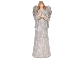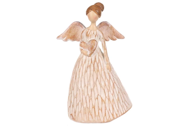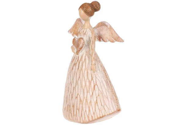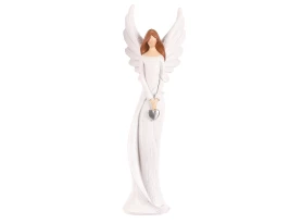 Dekoratívna soška anjela držiaca srdce je vyrobená z polyresinu v béžovom prevedení. Či už dekoráciu umiestnite na policu, parapet, komodu alebo stôl, bude Vám pripomínať lásku a ochranu, ktoré anjeli symbolizujú. Dekoračná figúrka môže zdobiť Vašu domácnosť po celý rok, ale aj krásne doladí Vianočnú atmosféru. Výška 12 cm.