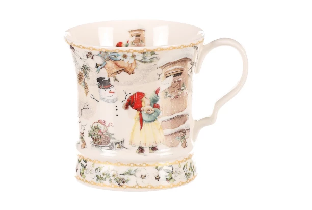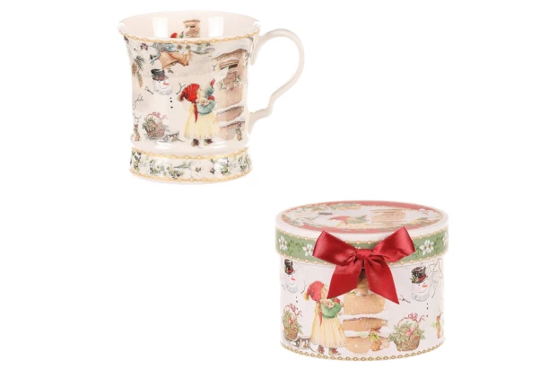 Krásne maľovaný porcelánový hrnček v elegantnej darčekovej dóze poteší Vašich blízkych počas Vianoc. Zimný motív, doplnený obrázkom veselého snehuliaka a dievčatka, sa bude na Vašej poličke alebo stole skutočne vynímať. Táto sada je ideálna pre sviatočné obdobie, či už ako darček, alebo na pridanie slávnostného nádychu do Vašej kuchyne.