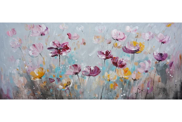 Ručne maľovaný obraz Kvetinová lúka 140x60 cm, olejomaľba