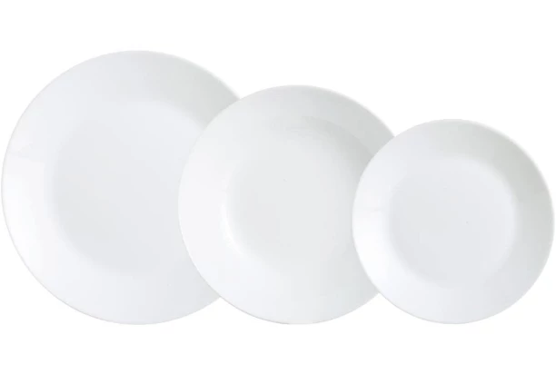 Elegantná jedálenská sada tanierov pre 6 osôb vyrobená z kvalitného tvrdeného skla v čisto bielej farbe je ideálna pre každodenné aj slávnostné stolovanie. Vďaka zvýšenej odolnosti proti prasklinám, poškriabaniu a vysokým teplotám sa taniere ľahko udržujú a vydržia dlho ako nové. Ich hladký a jednoduchý dizajn dodáva stolovaniu ľahkosť a eleganciu. Set obsahuje 18 kusov tanierov.