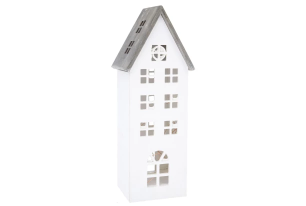 Elegantný drevený domček s LED osvetlením vytvorí v každom interiéri útulnú vianočnú atmosféru. Domček v šedo-bielej farbe sa hodí do rôznych štýlov vianočnej výzdoby.