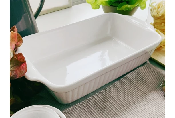 Zapekacia miska s objemom 2,5 l z kvalitnej kameniny je ideálna na prípravu i servírovanie pokrmov. Táto hranatá misa je vhodná do rúry až do 250 ° C a je možné ju bez obáv použiť aj v mikrovlnnej rúre. Miska je opatrená výrazným pruhovým reliéfom. Vďaka univerzálnej bielej farbe sa hodí do akejkoľvek kuchyne. Ideálna pre rôzne typy pokrmov – od zapekaných zemiakov až po dezerty.