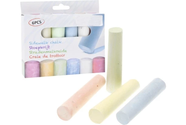 Farebné kriedy v sade 6 kusov využijú hlavne deti pri kreslení na chodník alebo kresliacu tabuľu.